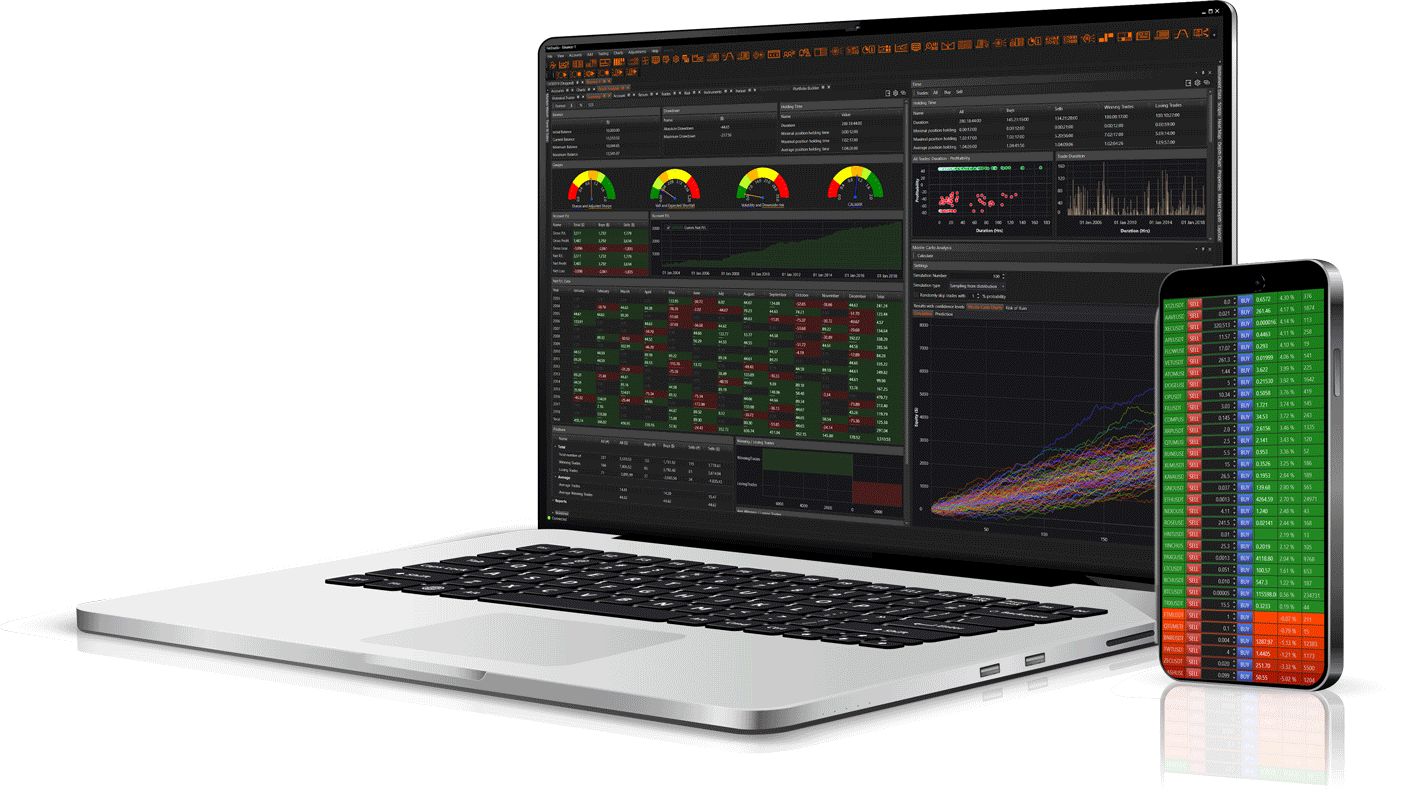 Audit trades and dig deep into performance—returns, risk, time/instrument breakdowns, portfolio tools, correlations, and Monte Carlo—so you double down on what truly works.