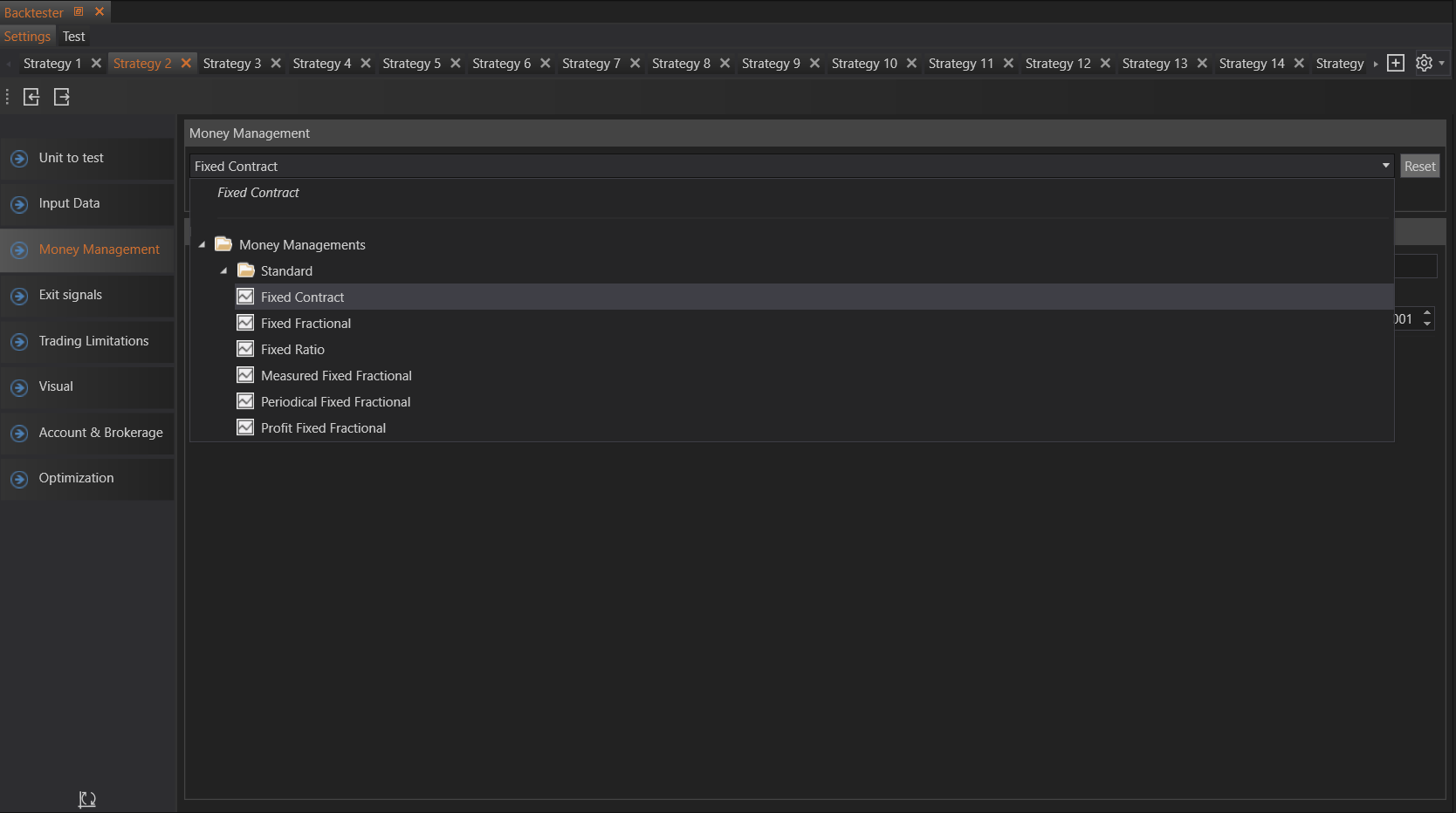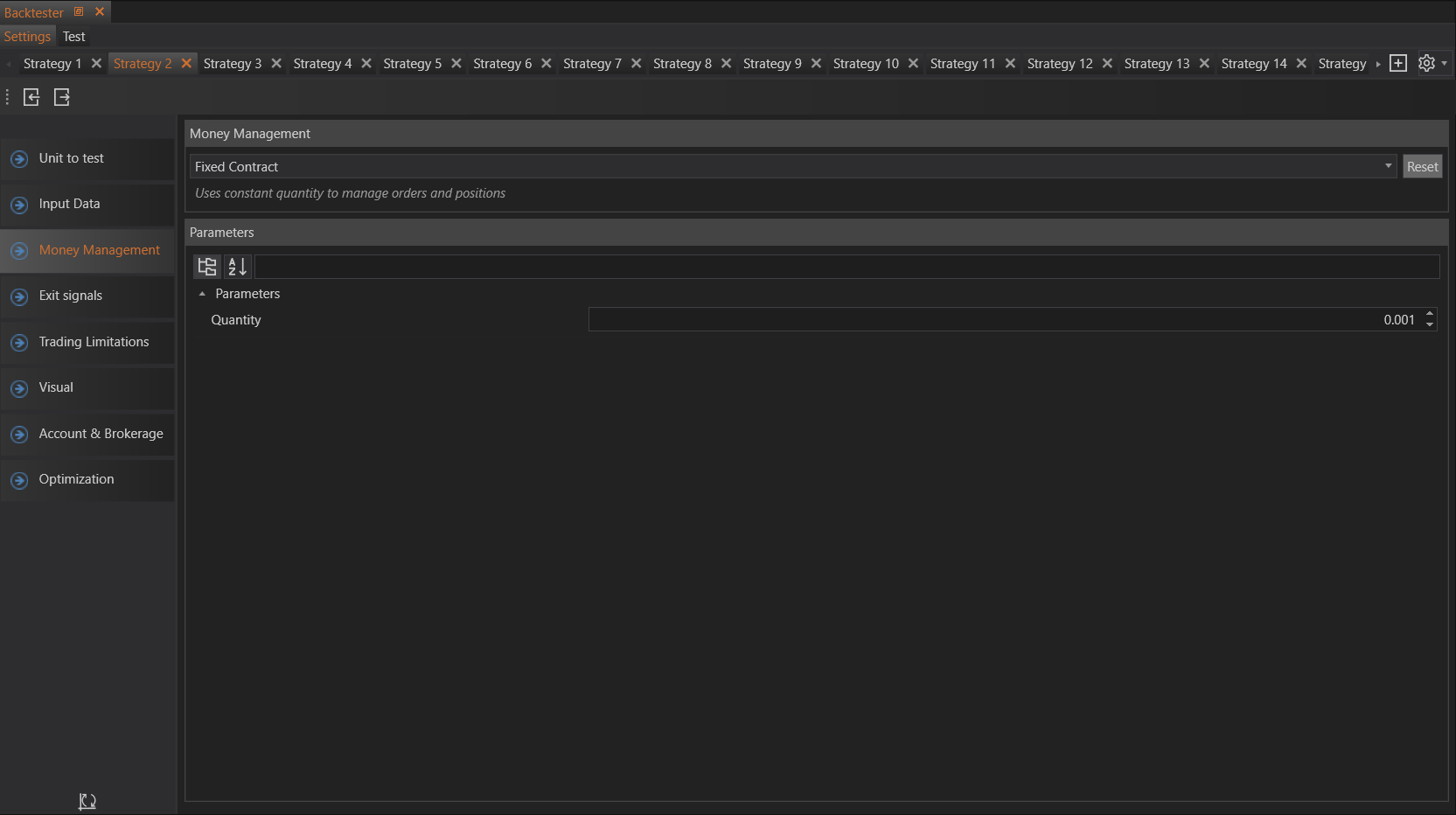 If users prefer not to use advanced position sizing methods, they can select the Fixed Contract method. This method allows users to set a fixed quantity that will be used for all trades in the strategy.