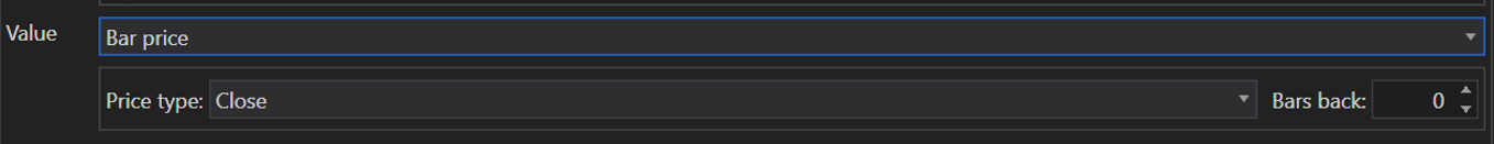 An operand can be defined using bar series data, similar to indicator values. Users can specify the bar index and the type of price (Open, Close, High, or Low) they wish to use. This method is particularly useful for strategies that rely on historical price patterns or specific price points within each bar.