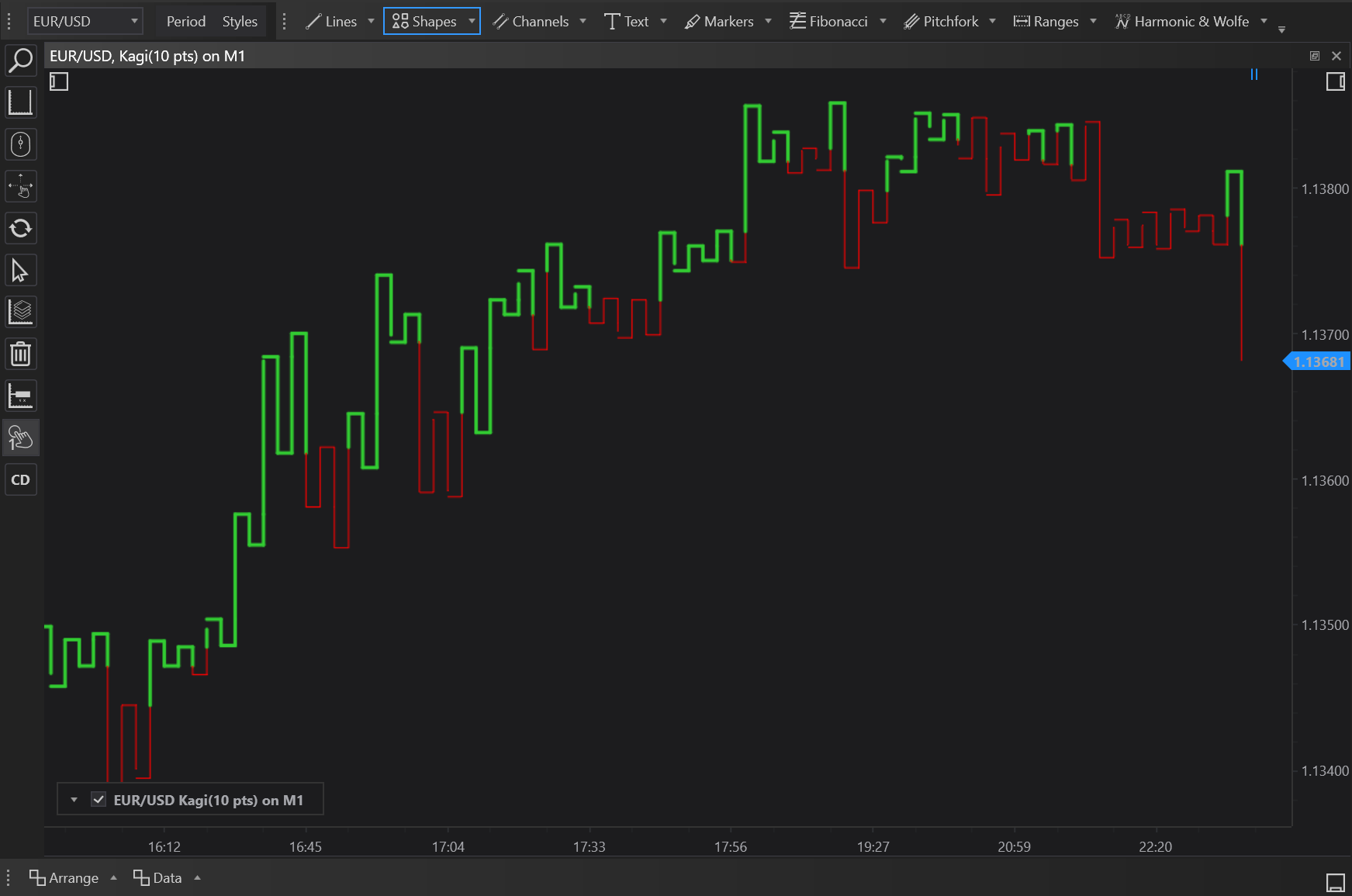 Traders can use Kagi charts to identify potential buy and sell signals in a variety of markets. For example, a trader might use a Kagi chart to track the price of a stock. If the Kagi line changes direction, indicating a shift in market sentiment, the trader might interpret this as a signal to either buy or sell the stock.
