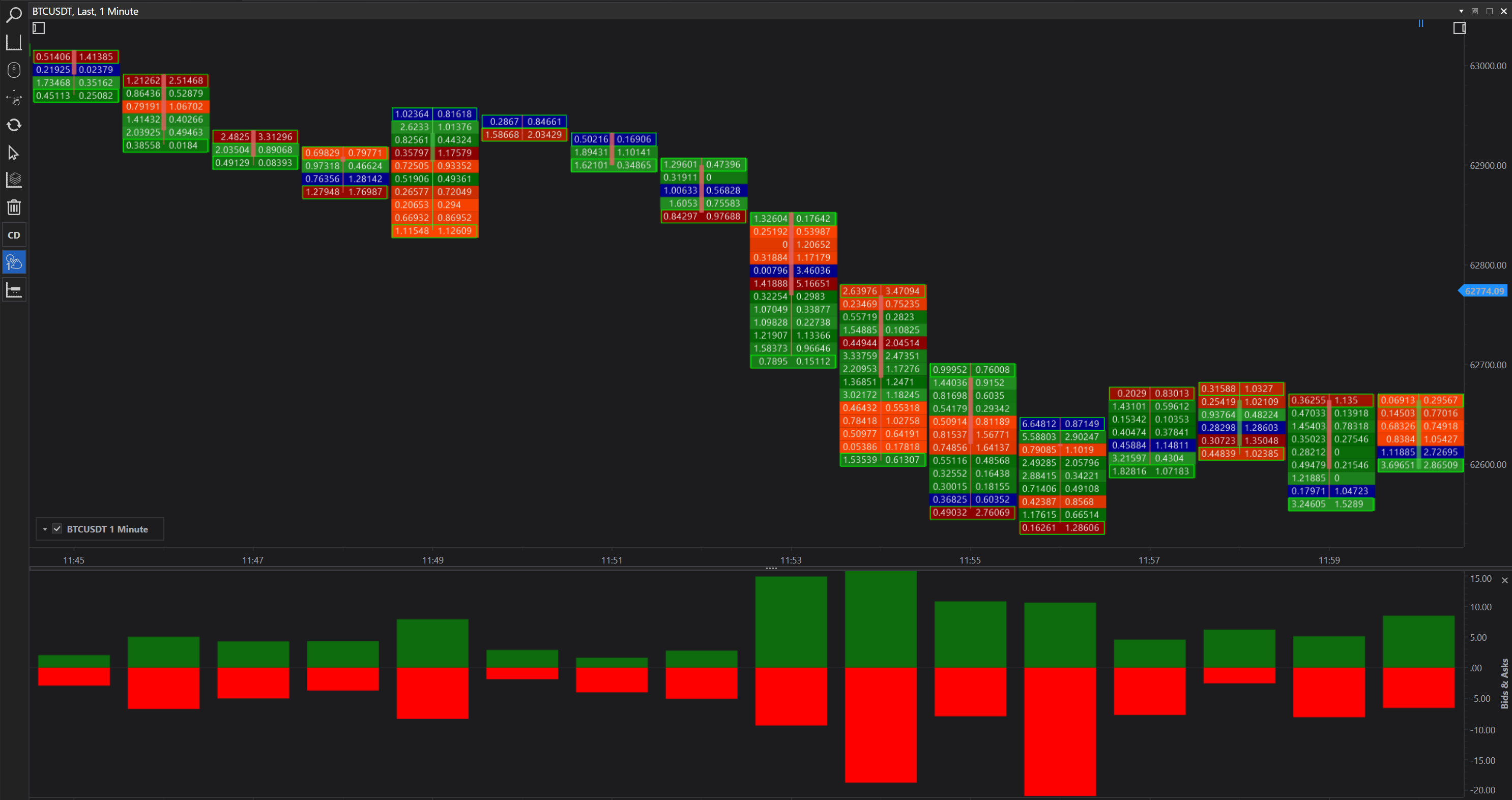 Complementary Analysis: Each of these indicators complements the data shown in cluster charts by providing additional layers of analysis. For example, while cluster charts can show where trades are concentrated, delta and cumulative delta can indicate whether these trades are predominantly buys or sells.