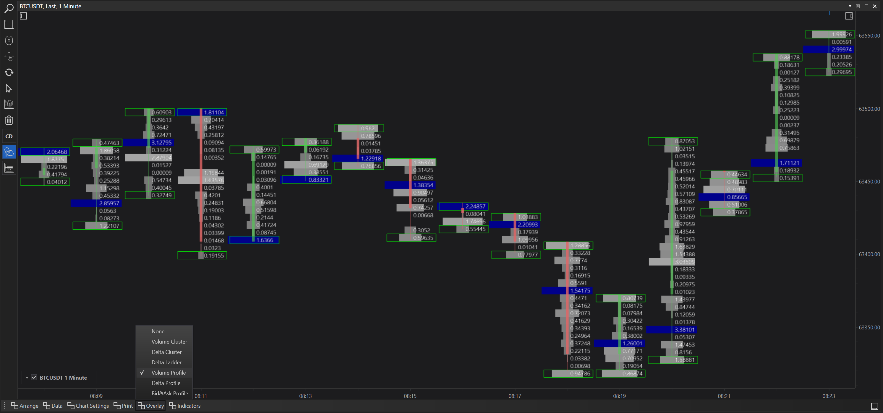 - Bid & Ask Profile: Combines bid and ask volumes in a profile view, which can be pivotal for understanding the bid-ask spread dynamics throughout the trading session.