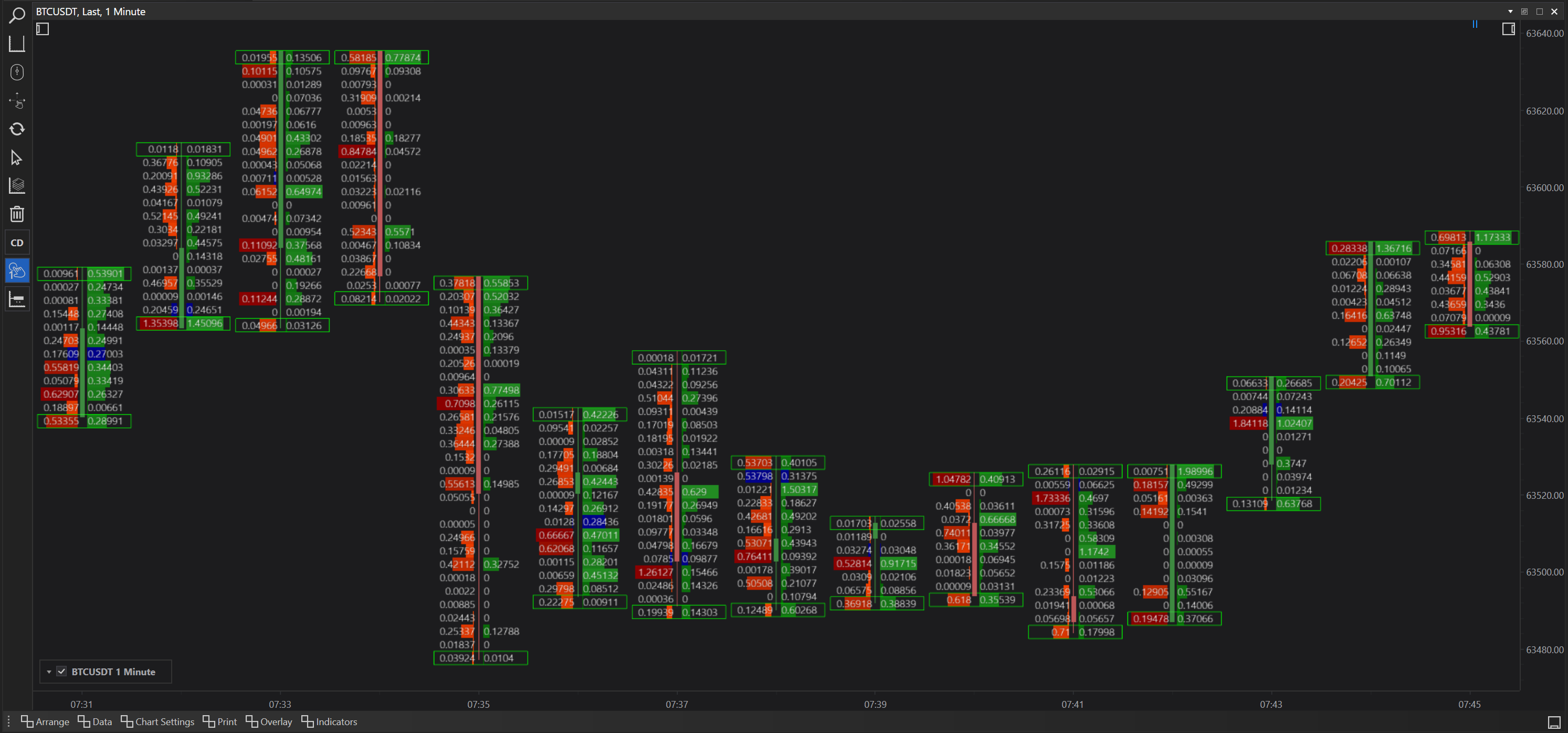 - Imbalance: Identifies areas where there is a significant imbalance between buys and sells, which can indicate potential reversal points or continuation of trends.