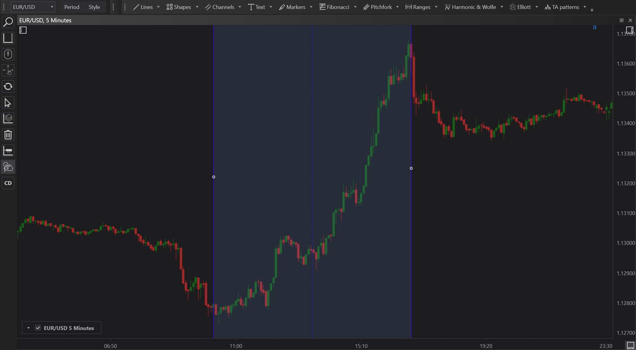 The Vertical Extended Channel in FinStudio is a powerful analytical tool that offers traders the ability to conduct detailed, time-focused analysis across an extended dataset. By providing a continuous and dynamic view of how markets react over time, it allows for more nuanced understanding and strategic planning, particularly in volatile or event-driven markets. This tool is indispensable for traders who require a broader temporal perspective to guide their trading decisions effectively.
