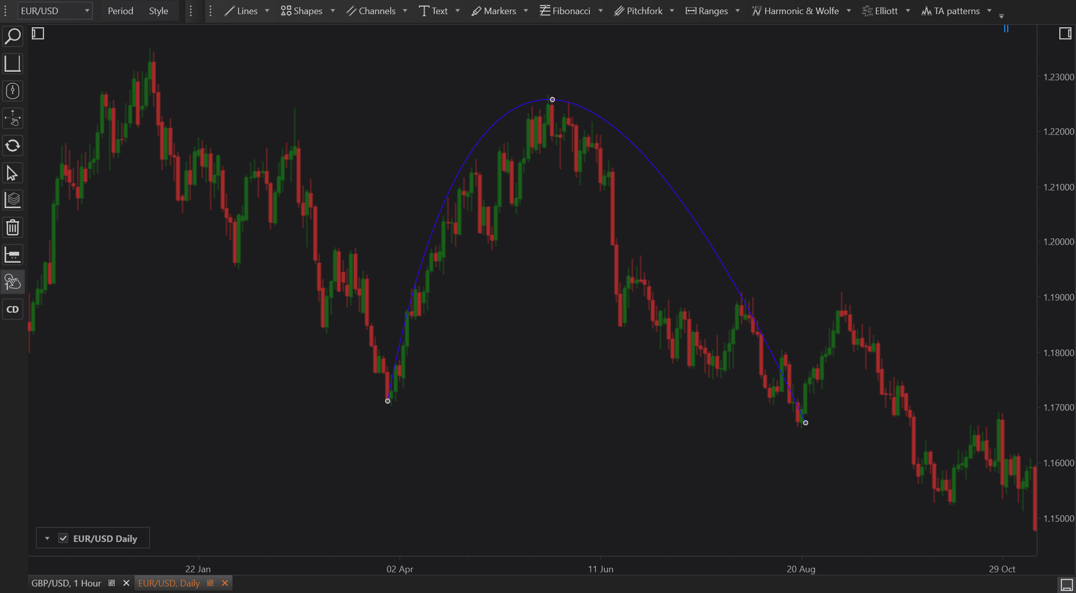- Flexible Trend Lines: Unlike straight line tools, the Curve tool allows for the creation of lines that can bend and adapt to more dynamic market movements.