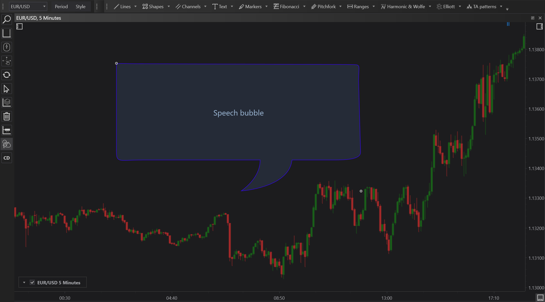 - Flexible Adjustment: The rectangle bubble can be resized and moved after placement to accommodate changes in analysis or to highlight different chart features effectively.