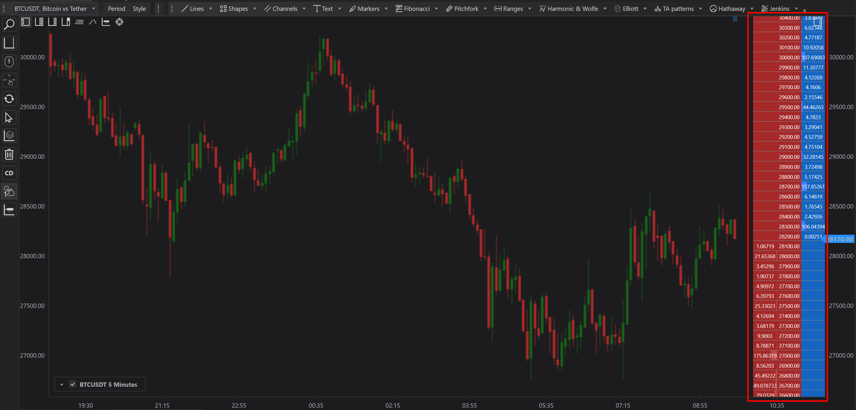 The Grid Trader panel in the FinStudio Charts module is an essential tool for traders who focus on market depth and volume at specific price levels. This panel provides a straightforward and effective way to visualize and interact with the order book directly within the chart interface.