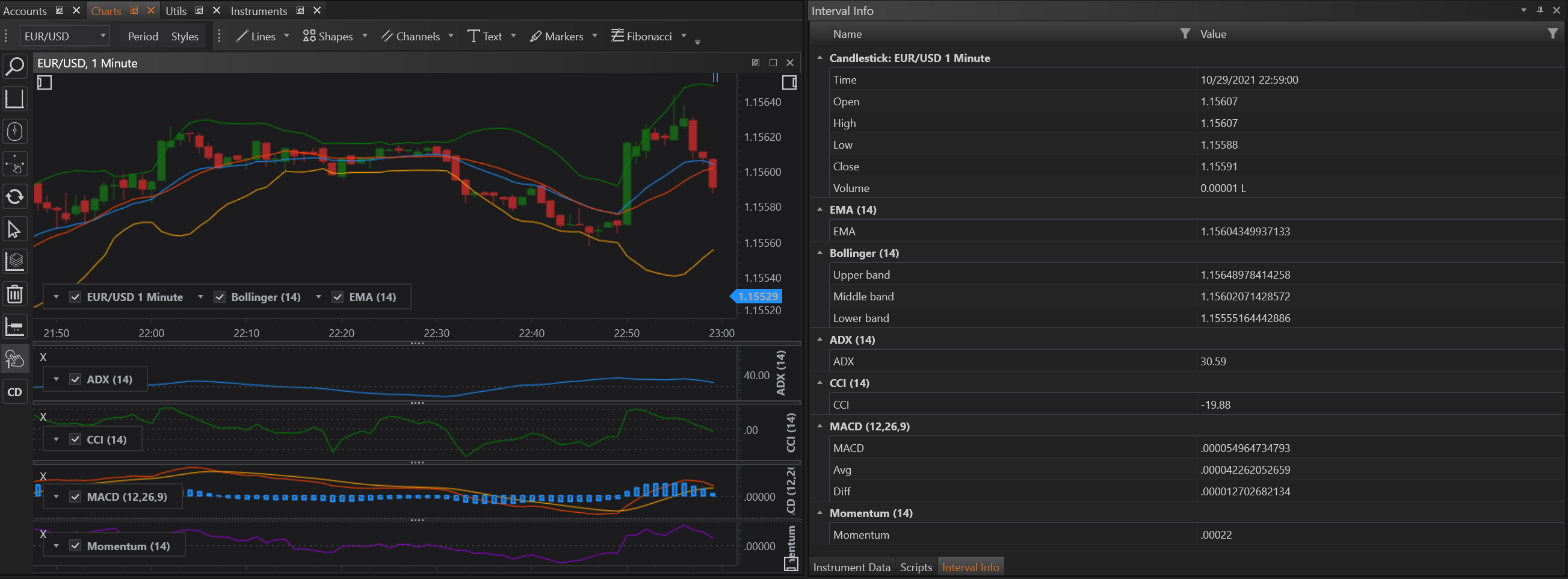 Comprehensive Indicator Information: Beyond basic interval data, the module also provides details on any indicators that have been added to the chart. Whether it’s moving averages, RSI, MACD, or custom indicators, the information about how these indicators interact with the specific interval is readily available.