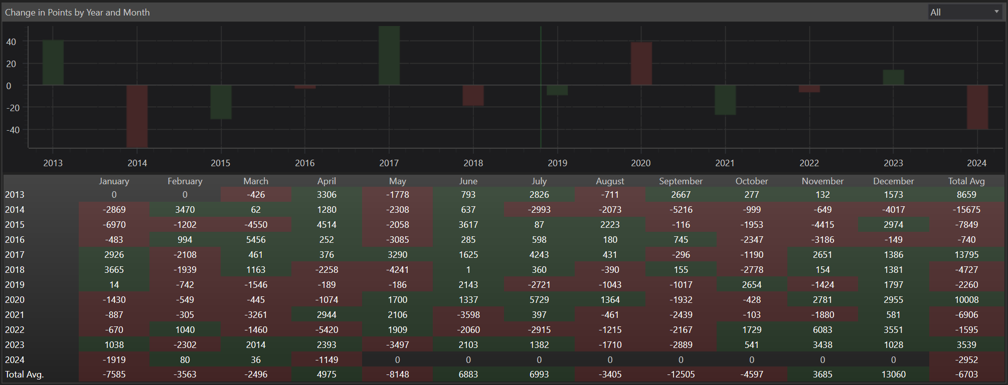 - Utility: Useful for long-term investors or traders looking to capitalize on predictable seasonal fluctuations or annual trends in specific instruments.