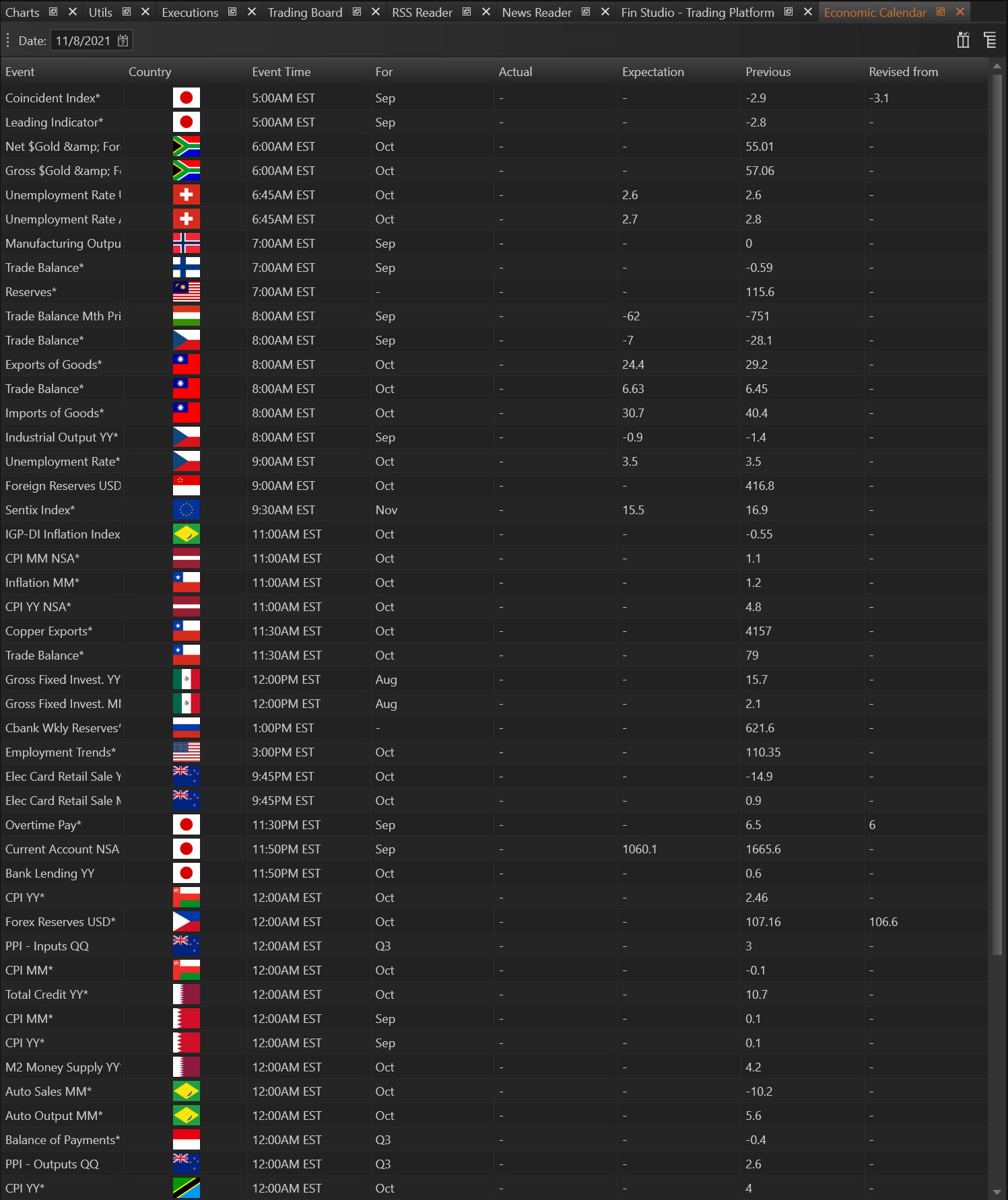 • Event Listings: Displays a list of upcoming economic events along with relevant details such as the date, time, country, and impact level.