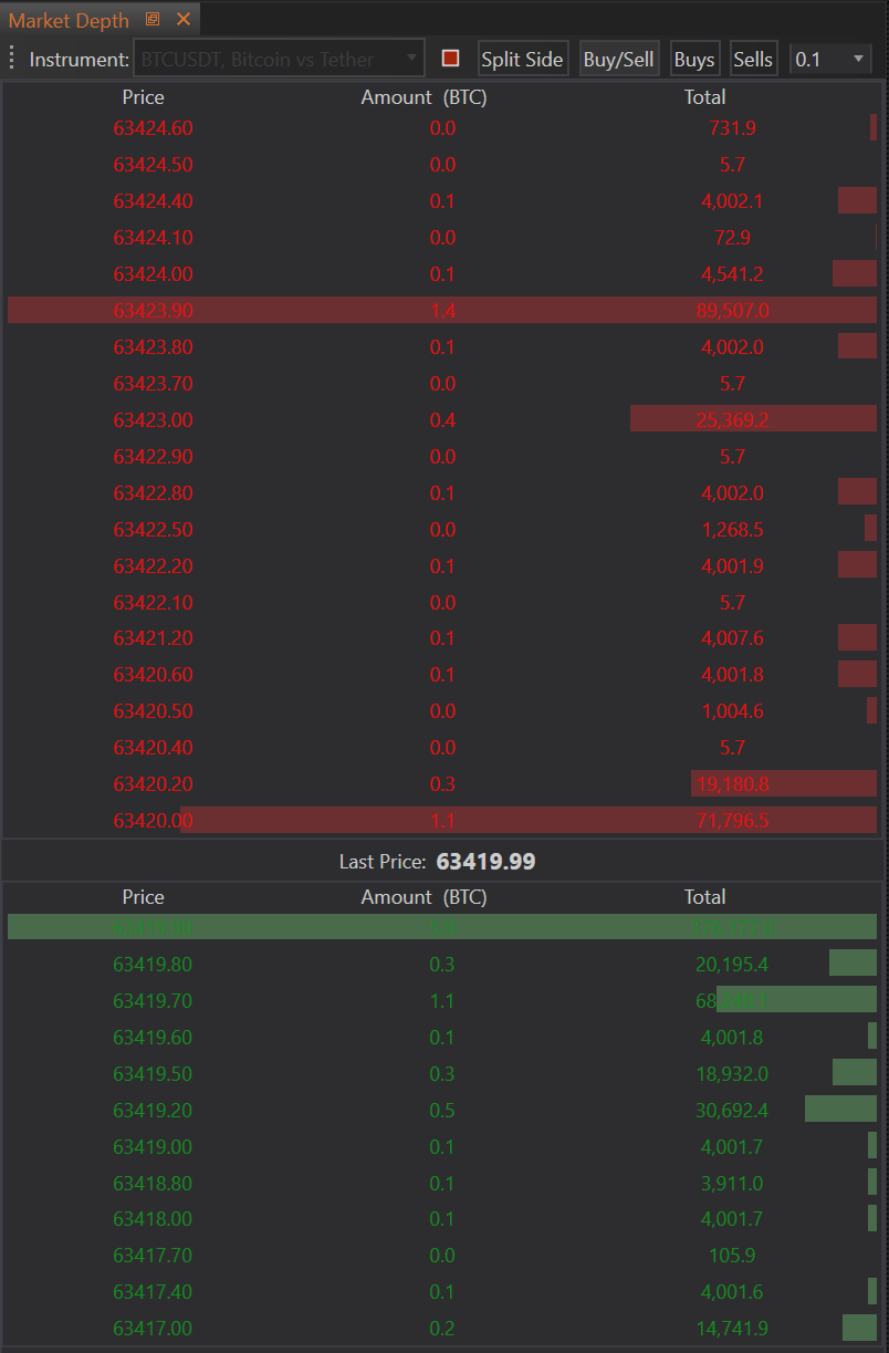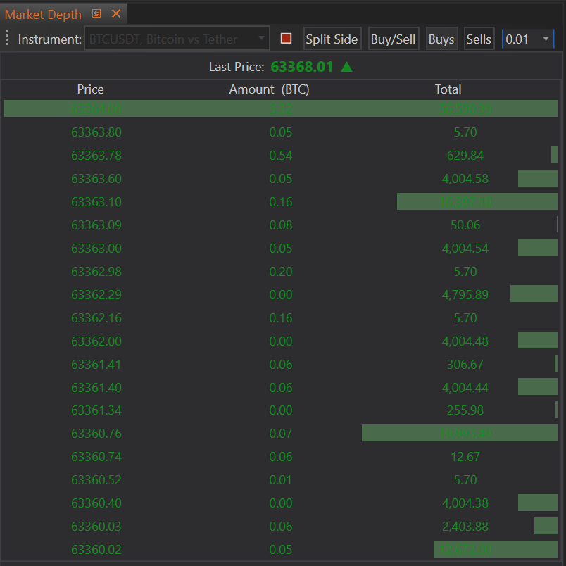 - Tailoring the View: By configuring these properties, traders can optimize the market depth display to match their specific trading preferences and requirements, enhancing both the usability and effectiveness of the tool.