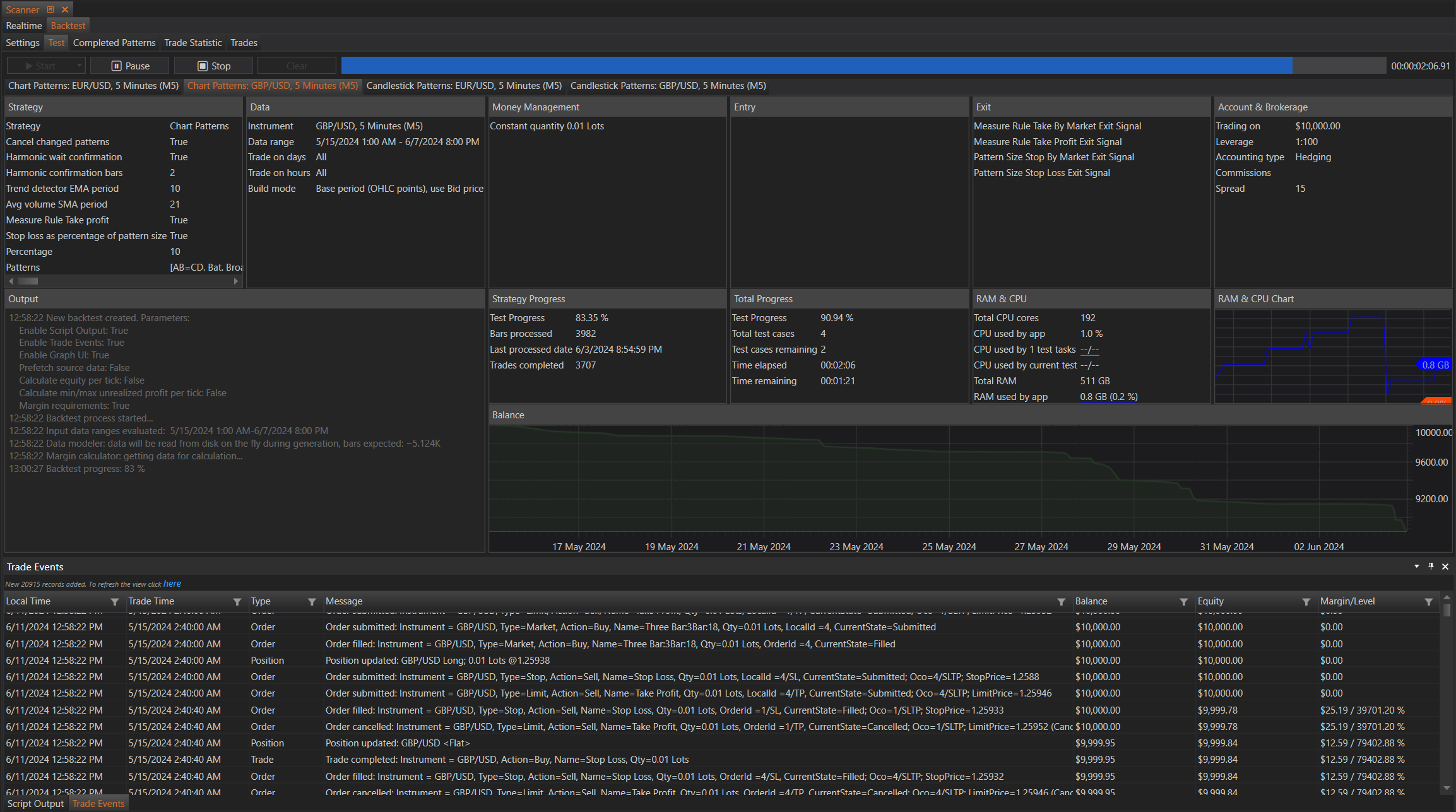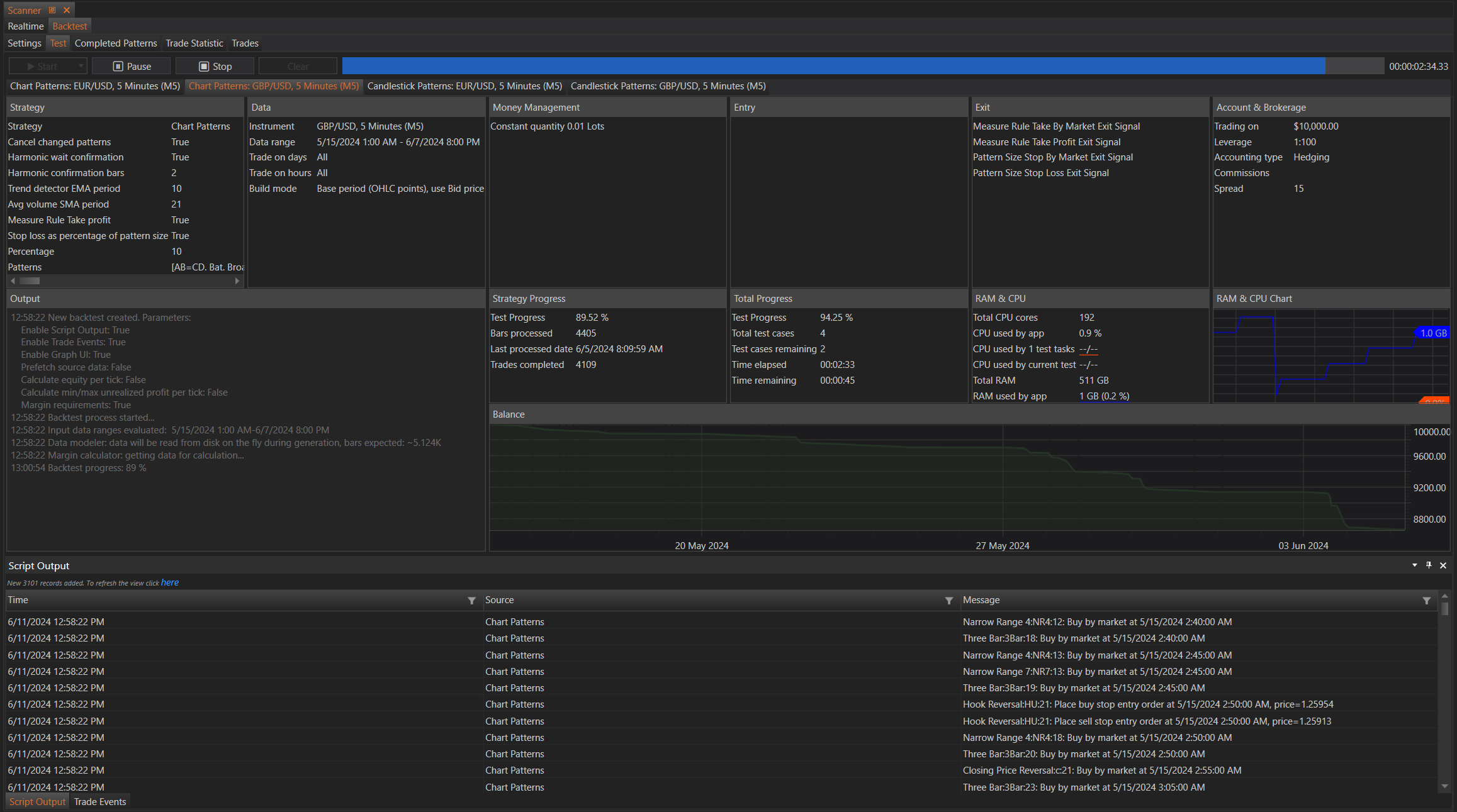 - Completed Patterns: View detailed information about the patterns identified during the backtest.