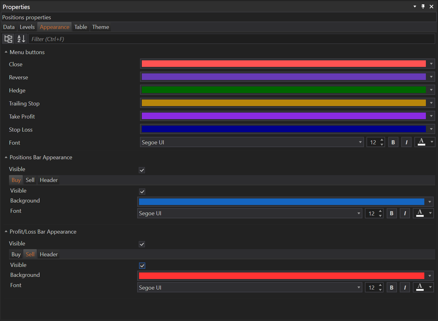 - The Appearance Tab allows users to tailor the visual elements of the Positions module, including button colors, bar visibility, and text styling. These modifications enhance the user interface, making it more intuitive and aligned with personal preferences or organizational branding.