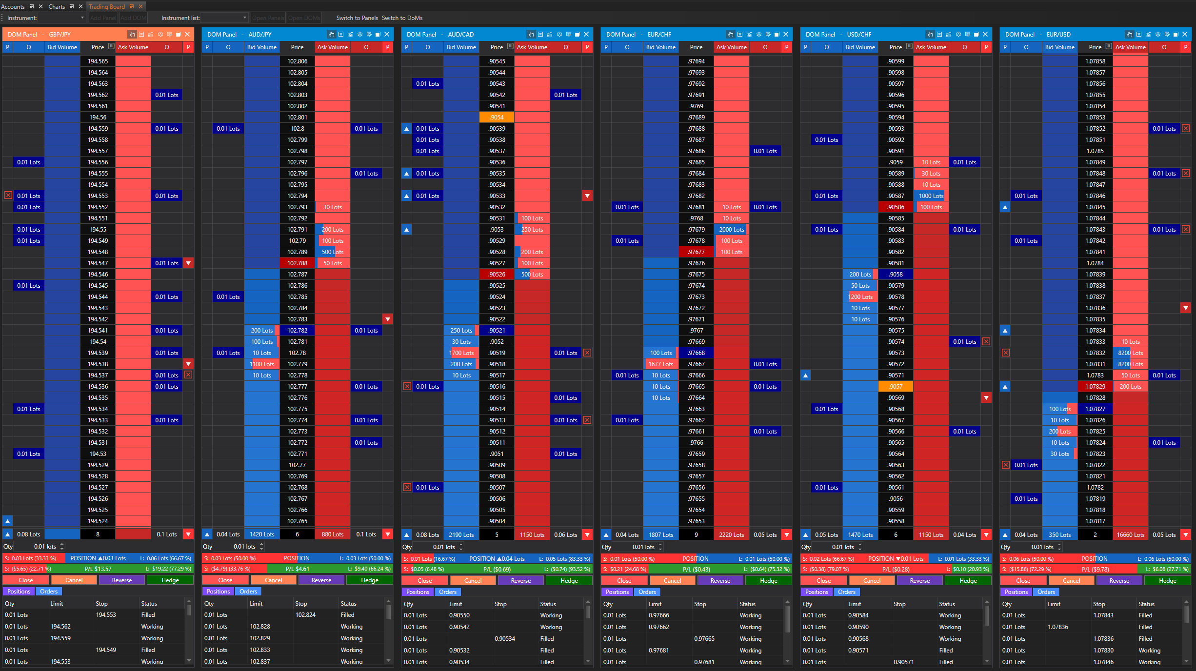 The DoM Panel is designed to provide traders with a direct and detailed view of market depth, facilitating informed trading decisions based on current market conditions. Its integrative approach combines real-time data with functional tools, enhancing both the speed and precision of trading operations.