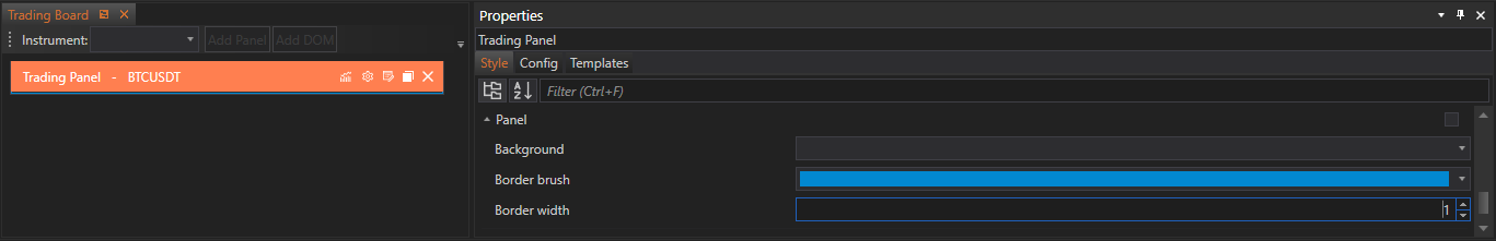 - Traders can adjust the Panel settings by navigating to the Panel section within the Style Tab of the Tradingboard Trade Panel. The settings are straightforward, allowing for quick modifications that have a significant visual impact.