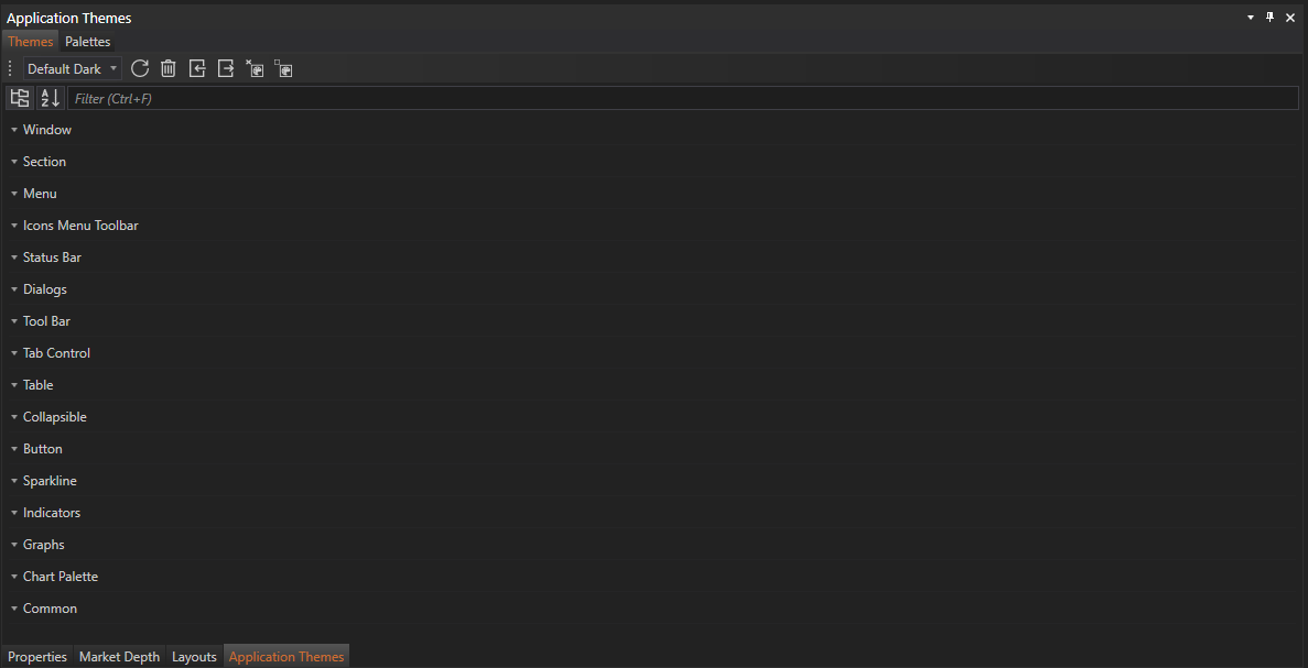 - The Themes tab serves as the central location for modifying the visual style of every element within the application. Users can alter colors, fonts, and layouts to create a unique trading environment that enhances visual clarity and user experience.