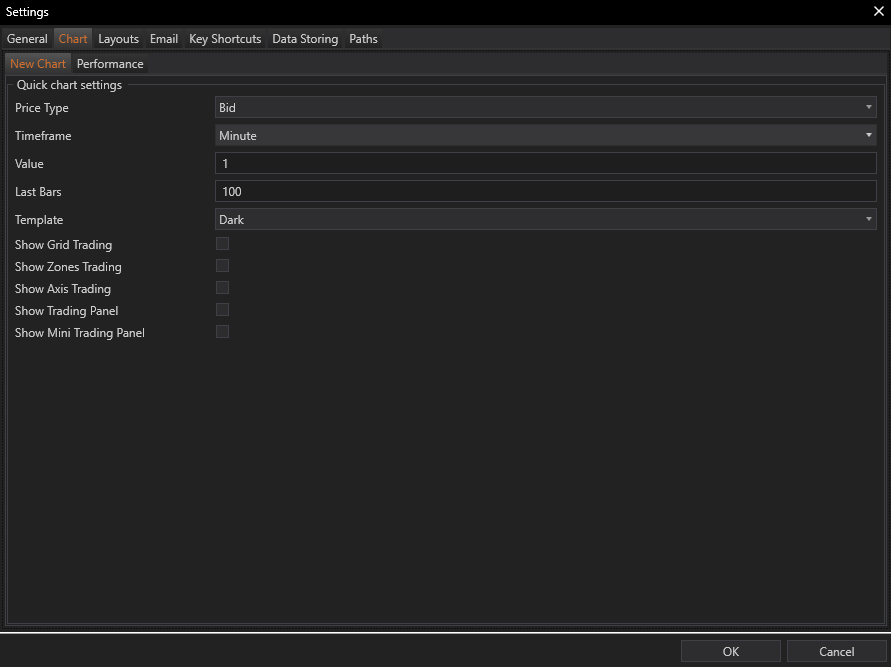 The Charts tab in Settings module is designed to provide traders with extensive control over how charts are configured and displayed, catering to a wide range of preferences and requirements. From basic setup options in the Quick Chart Settings to advanced graphical performance adjustments, these settings allow traders to tailor their charting environment to optimize both functionality and aesthetics, ensuring that the charts not only look good but also perform well under various trading conditions.