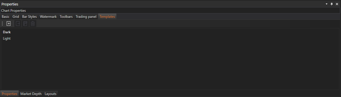 - Templates allow users to save configurations of settings that can be quickly applied to similar instances in the future. This is especially useful for traders who use complex setups and need to ensure consistent application of settings across different trading sessions or conditions.